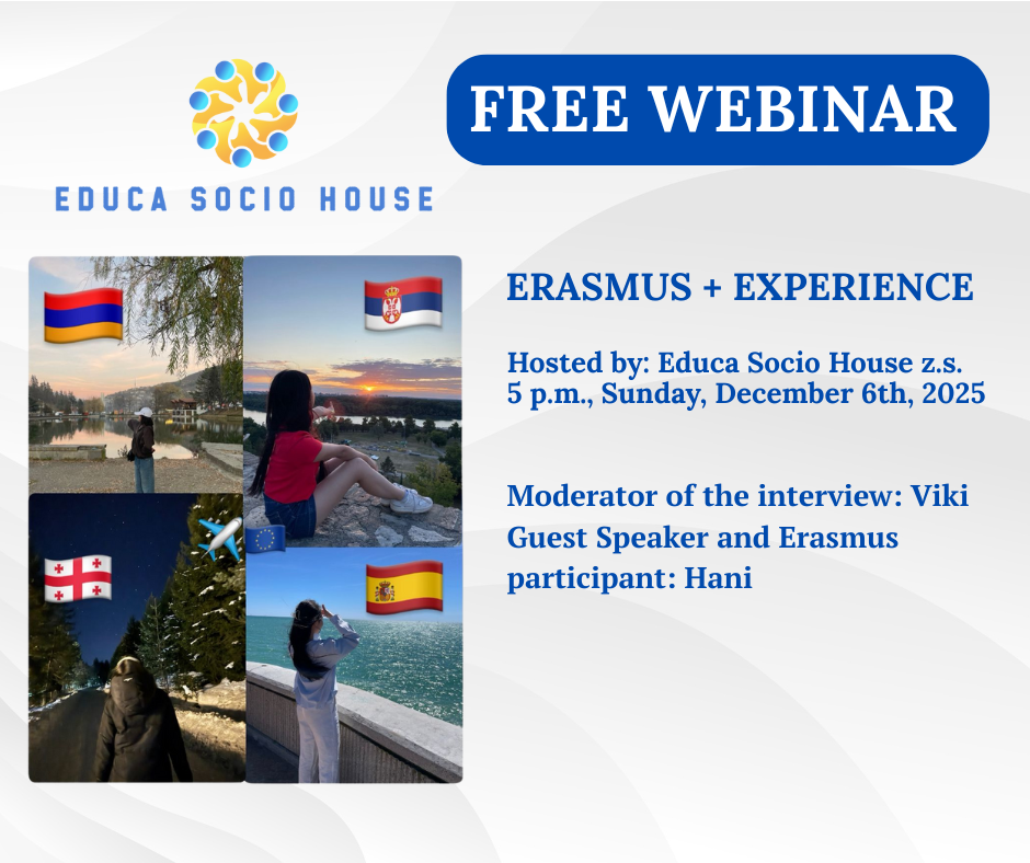 Webinář moderuje Viki a své zkušenosti s Erasmus + přináší Hani, účastnice programu. Společně mluví o tom, jaké to je zapojit se do projektu Erasmus+, co všechno člověk zažije, co mu to může přinést a s jakými výzvami se může setkat. Webinář je postavený na osobní zkušenosti a otevřeném