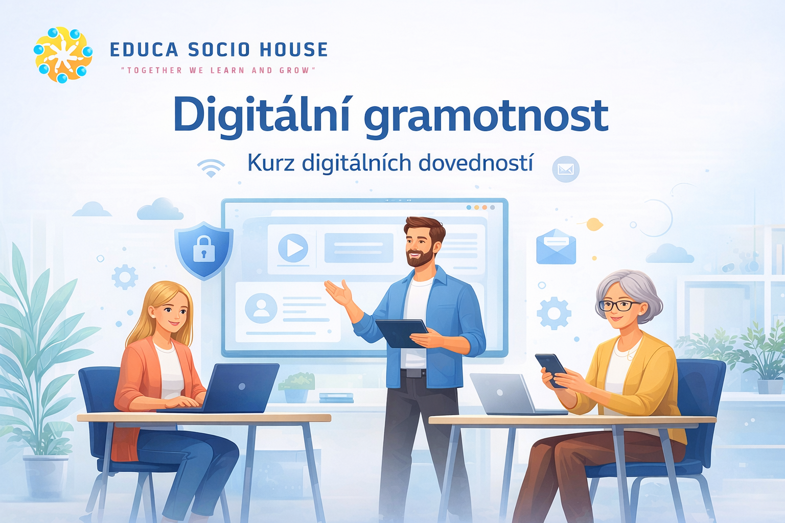 IT kurzy od Educa Socio House vás připraví na moderní pracovní prostředí v České republice. Pomůžeme vám získat praktické digitální dovednosti, které zaměstnavatelé skutečně vyžadují.
